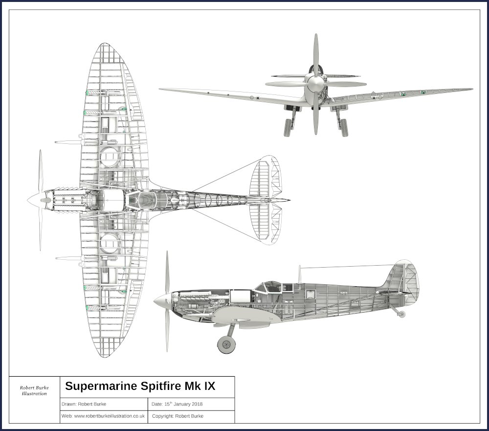 Initially started as a personal project to challenge my knowledge of 3D modelling and to test the capabilities of the Freestyle line renderer used in Blender. The goal was to see if a 3D cutaway model of the Mk IX Spitfire could match the style of 2D cut away images often seen in Warlord comics using traditional ink on paper in the 60’s and 70’s.