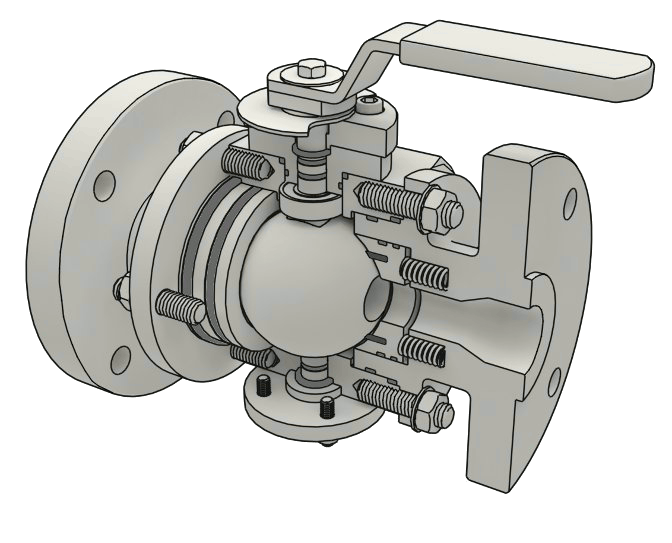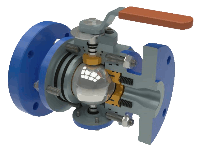 An animated cutaway view also helps demonstrate the principal of an assemblies operation, such as the ball balve below opening and closing, or pistons and valves moving in an internal combustion engine. They can be extremely helpful in explainer animations.